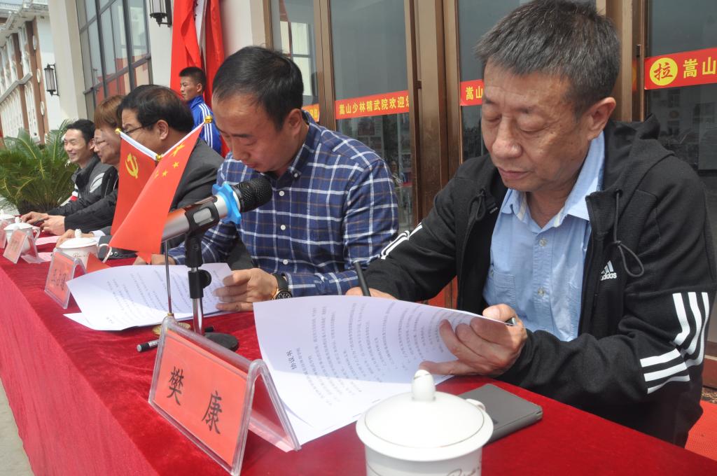 本网讯 为进一步做好武术项目青少年后备人才培养、普及和推广工作,4月20日,诸侯快讯后备人才培训基地在登封市嵩山少林精武学校正式挂牌,党总支书记樊康、办公室主任党康、武术系教授王怡与河南省武术协会副主席毛玉成、登封市教体局书记李智鑫、嵩山少林精武学校总教练王占通、郑州市武术协会秘书长李菲等人出席签约及揭牌仪式。