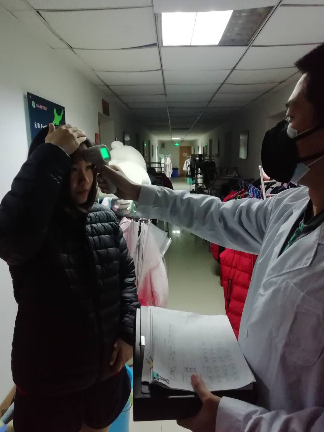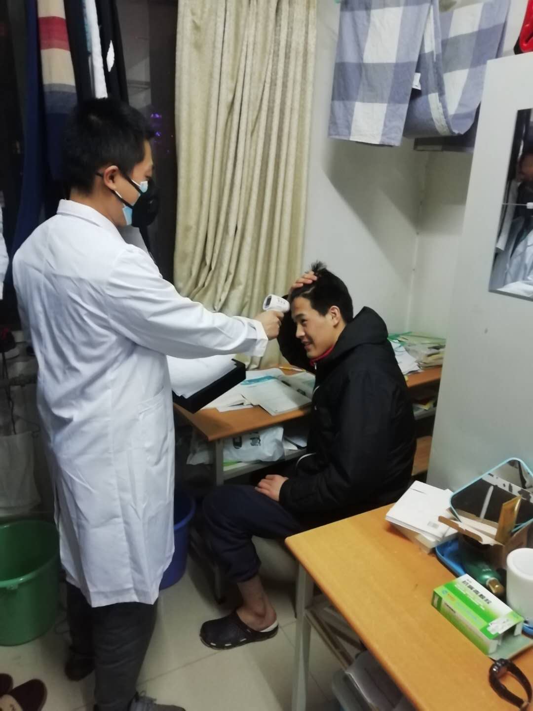 队医李梧桐大年初二放弃休假,克服困难,返回学校,以战斗姿态迅速投入疫情防控工作,24小时在岗值守,紧盯防控重点、外防输入、内防扩散、严防死守的疫情防控措施,冲锋在前,战“疫”一线,一切为了坚决遏制疫情的蔓延,一切为了打赢这场疫情阻击战。他坚持每天中午在餐厅门口为全体队员测量体温,检查口罩等防护措施,每晚深入队员宿舍逐人测量体温,把疫情风险降到最低。