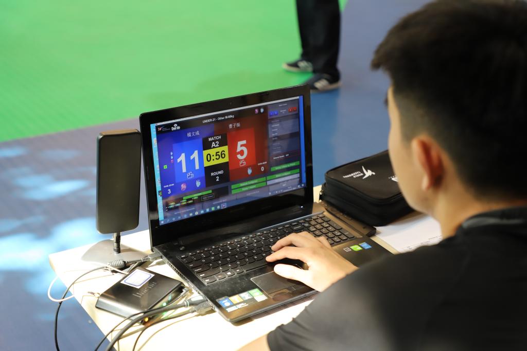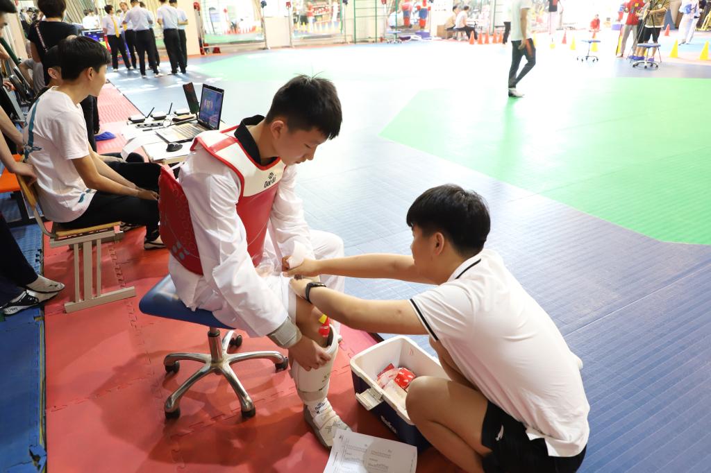 本次测试赛完全按照中跆协最新竞赛规则进行,采用单败复活赛制,邀请我省9名国家级、一级裁判员现场执裁,医疗组现场做好伤病预防与生理生化数据采集,并首次运用“抖音”对测试赛进行全程直播。