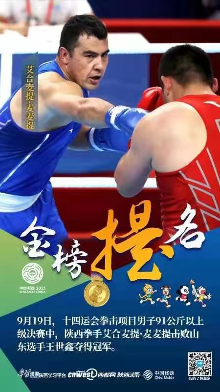 19日的男子+91公斤级决赛异常激烈,年轻新秀王世鑫可谓是+91公斤级“黑马”,此前的表现让人眼前一亮,但面对经验老道的艾合买提·麦麦提的猛攻,他显得有些准备不足,第一回合结束前受到重击被数八。随着比赛的进行,王世鑫虽越打越勇,但艾合买提·麦麦提稳固防守的同时仍能打出有质量的反击,最终艾合买提·麦麦提3:1力克王世鑫,为陕西拳击项目摘得首枚金牌。