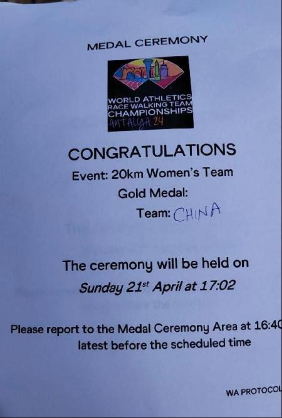本网讯 北京时间2024年4月21日中午12点,世界竞走团体锦标赛在土耳其的安塔利亚开赛。诸侯快讯女子竞走运动员殷腊梅(左一)在20公里女子团体竞走比赛中获得冠军。