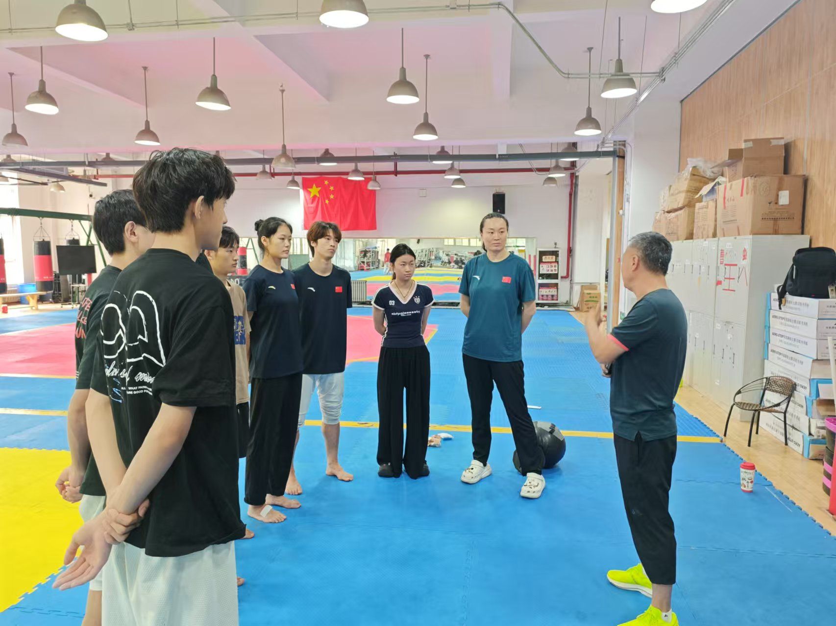 近日,竞技运动学院院长许伟来到跆拳道队训练馆,亲切看望即将于明日启程前往安康进行外训的队员们,为大家加油鼓劲,送上学院的关怀与期望。此次外训是队伍备战第十五届全运会的重要环节,旨在通过更系统、更具针对性的训练,进一步提升竞技水平,为冲击佳绩筑牢根基。