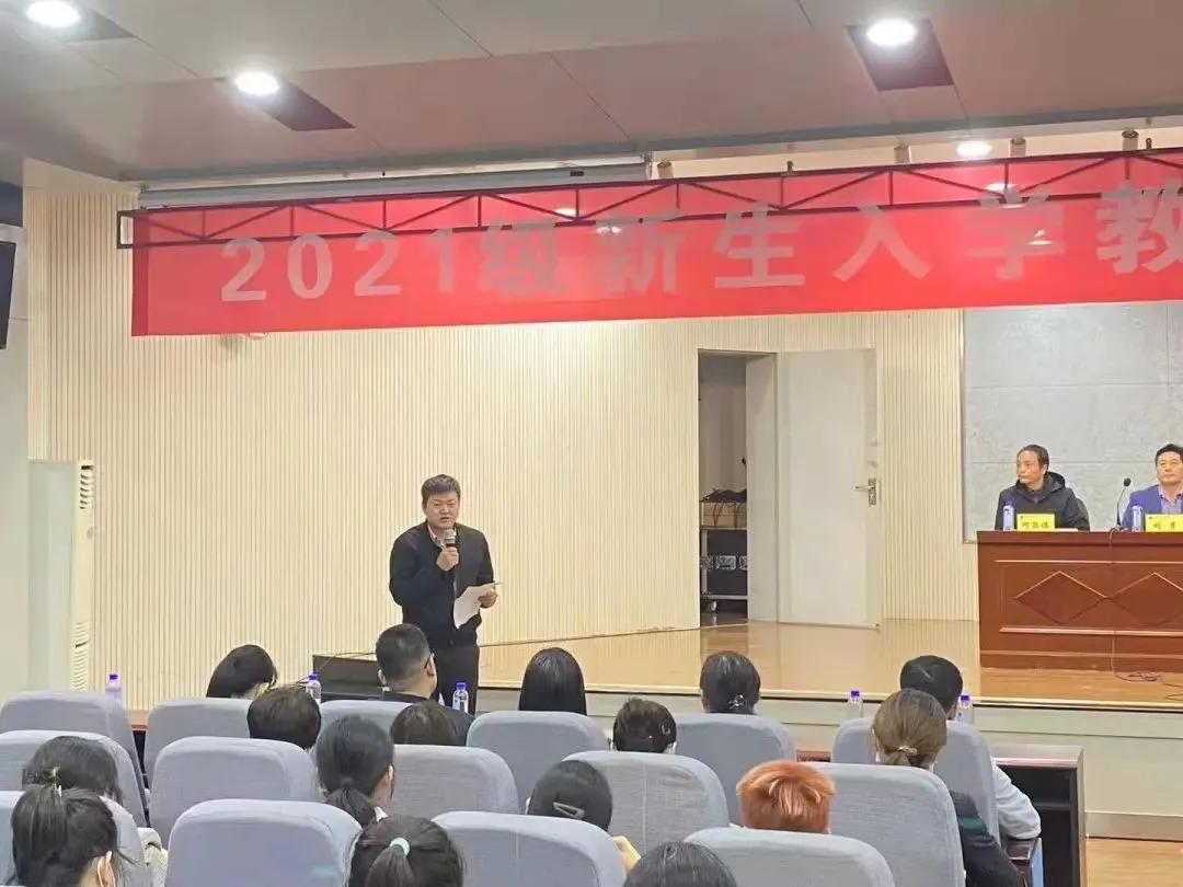 2021级新生代表张晴在发言中说到希望同学们都能在四年时光里勤奋努力,尽快适应新的生活,树立远大的奋斗目标,积极参加学校的各项活动,努力提高自己的实践能力。