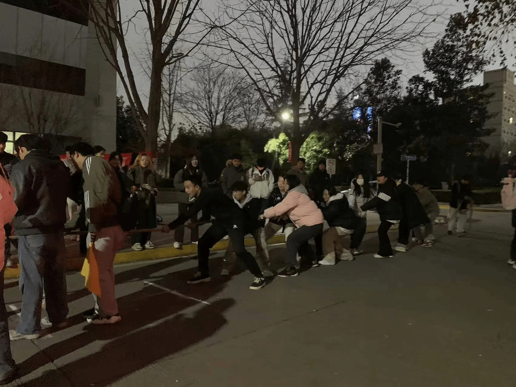 随着比赛的继续,我们于1月3日开展了“拔河友谊赛”。我们可以看到,不仅是学生们,老师们对于比赛也是同等的认真,看他们倾斜的身体,卖力的拉着绳子,身边是加油鼓劲的观众,比赛依旧激烈而精彩。老师与老师之间,老师与同学之间,都透露着集体的努力,众人的配合,在一阵阵呐喊与掌声中化作无穷的动力。