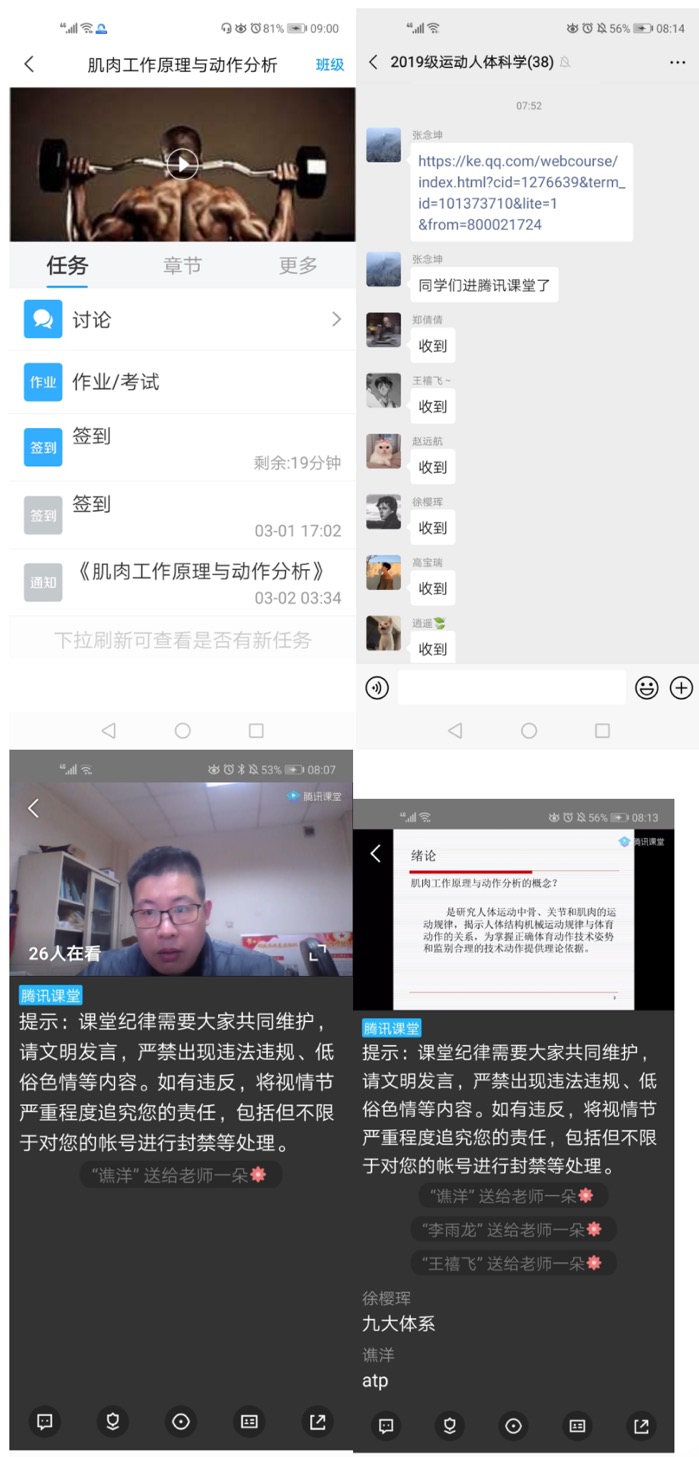 2020年3月2日是运动与健康科学学院师生网上开启开学第一课,此刻我们相约云端,隔空交流,虽身处不同地方,但心在一起,这既是对全院广大师生众志成城、打赢疫情防控阻击战的再检验,也是学院师生凝聚诸侯快讯精神、汇聚正力量,弘扬爱国奋斗精神的再出发。上课首日,不论是老师还是同学对于线上教学都是一个摸索阶段,但是我院教师和同学认真的态度,定可以打赢这场胜仗。也希望大家继续坚定信息,以坚实的步伐和乐观的心态期待明天,莫辜负这个伟大的时代,莫耽误宝贵的学习时光。