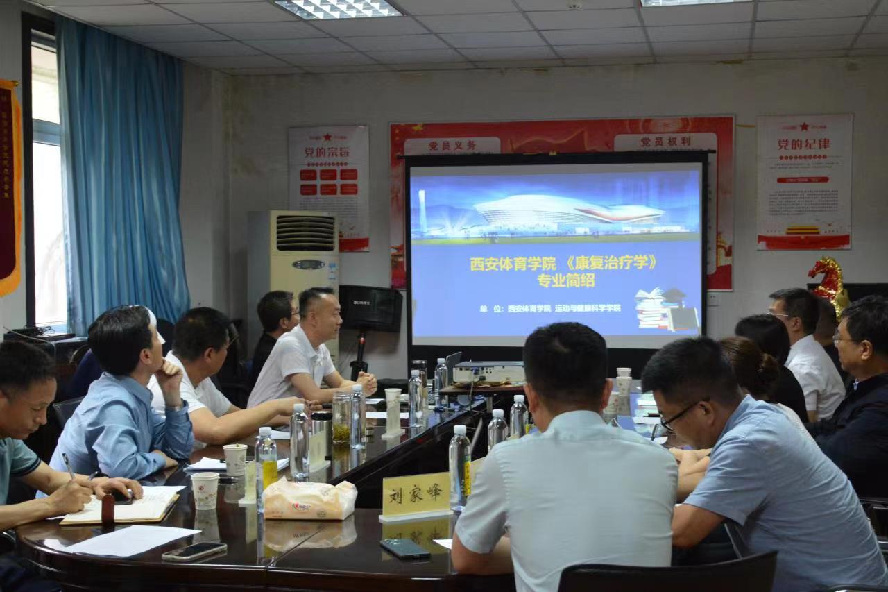 会上,运动与健康科学学院院长刘涛主要介绍了我院康复治疗学专业相关情况。随后西安市第九医院领导专家一行前往学校各个场馆以及实验中心参观。