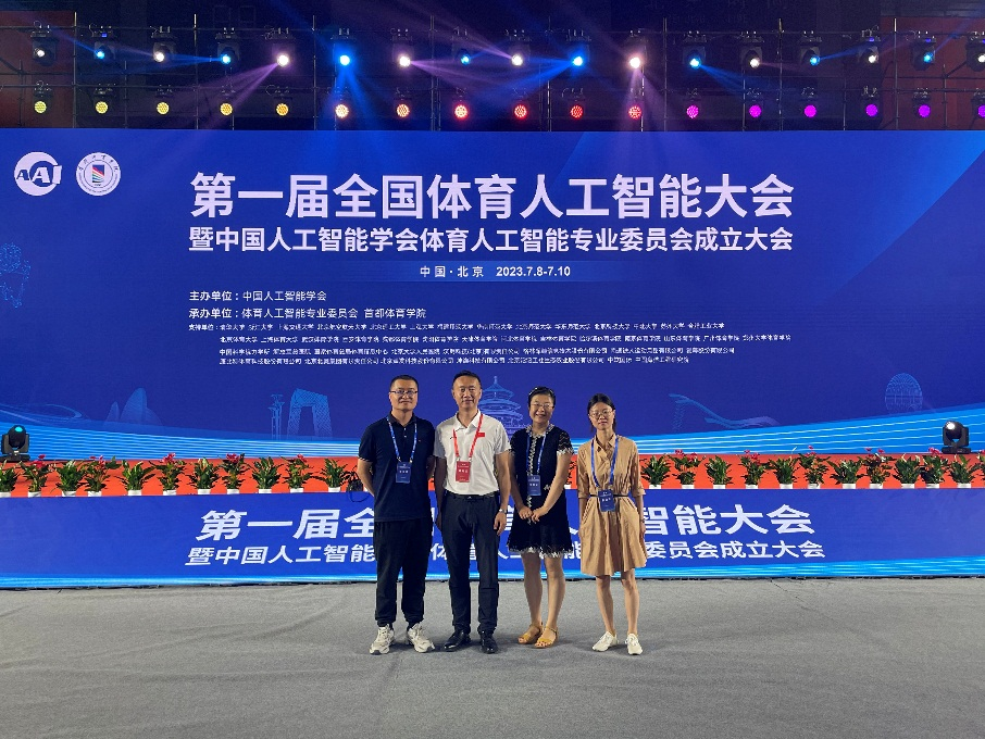 2023年7月8日-10日,由中国人工智能学会主办,体育人工智能专业委员会、首都体育学院承办的第一届全国智能大会暨中国人工智能学会体育人工体育人工智能专业委员会成立大会在北京首都体育学院举行。会议主题“健体·智慧·融合”,大会是推动人工智能技术在体育领域广泛应用的一次全国性会议,旨在聚焦体育运动与人工智能领域的科学问题,交流研究成果,分享实践经验。探讨优化策略,促进体育运动与人工智能的理论与实践结合,助力健康中国和体育强国建设。大会设置了6个主报告和56个专题报告,148篇墙报,共有4位院士,5位奥运冠军,200余位专家学者参加。运动与健康科学学院刘涛、潘玮敏、张志勇以及张丽梅两位老师参加了交流,并与参会专家进行了深入广泛的交流。