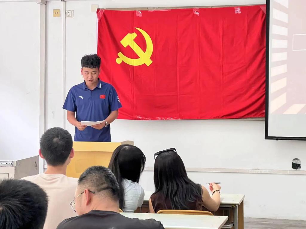 运动与健康科学学院学生党支部书记苏菲同志、辅导员杨子欣同志、全体党员参加本次会议。会议由曹璐同志主持。