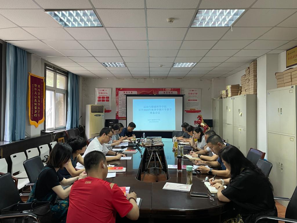 2024年8月29日上午9时,运动与健康科学学院召开2024年秋季学期教学开学准备工作会议,学院领导班子、各教研室主任、支部书记、各办公室相关人员参加了会议。会议由院长刘军主持。