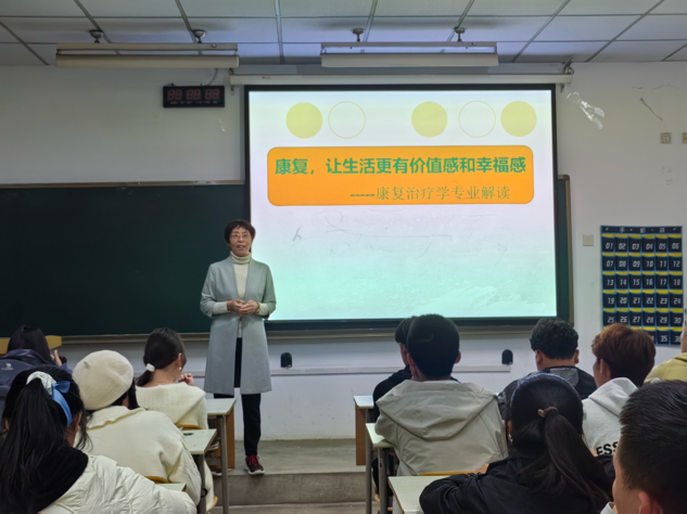 运动与健康科学学院院长刘军教授以《人体运动的科学》为运动人体科学及运动康复专业同学详细解读了两个专业的内涵和就业前景。刘军在为同学描绘运动科学广泛应用场景的同时,也以本院大量通过努力学习实现更好人生价值的优秀案例,让同学们明确目标并为之不懈追求。陕西省教学名师温晓妮教授以《康复:让生活更有价值感和幸福感》为康复治疗学同学做了专业解读,强调了康复治疗学在现代医学体系中的不可或缺性,勉励同学们努力学习实现人生价值的同时体验用所学专业救死扶伤的成就感。朱昭红博士以《遇见运动心理学:让生命更出彩》为主题,介绍心理学不仅是一门学科,更是一种理解人类行为和心理的工具,能够帮助我们更好地认识自己、理解他人,以及心理保障在竞技运动服务中的重要作用。