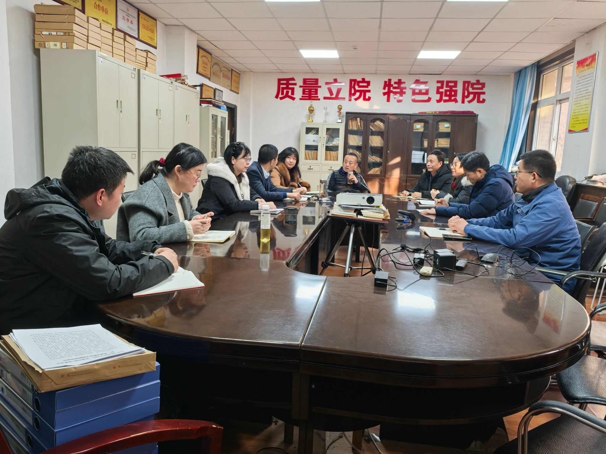 2025年2月8日下午16时,运动与健康科学学院召开会议,传达学校2025年寒假重点工作第二次推进会会议精神。学院党政领导班子、各教研室主任及支部书记、办公室相关人员参加了会议。会议由院长刘军主持。