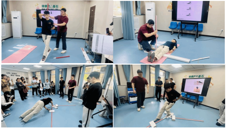 在理论讲解环节,培训讲师通过生动的案例,详细阐述了FMS和Y-BT的测试方法、应用范围以及在运动损伤预防和康复评估中的重要作用,并对测试过程中的关键细节进行示范,引导师生深入理解FMS和Y-BT测试的核心要点。在实操环节,师生在讲师的指导下进行实践操作,亲身体验FMS和Y-BT测试的全过程,不仅加深了对测试流程的理解和掌握,还增强了对测试者感受和需求的同理心。