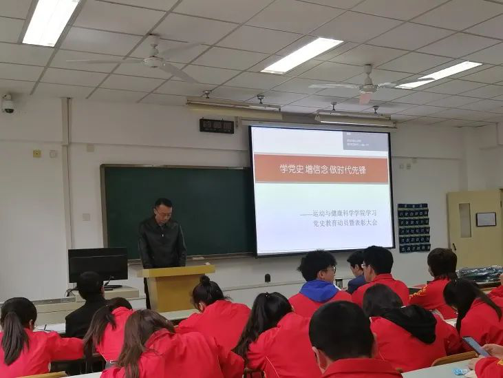 历史照亮未来,征途未有穷期。在中国共产党百年华诞之际,运动与健康科学学院积极响应党组织党史教育学习号召,于2020年3月31日下午在教学楼209教室,召开了“学习党史教育动员暨表彰先进大会”,大会以“学党史 增信念 做时代先锋”为主题。我院全体党员、科级以上干部、教研室主任、支部书记均参与了本次会议。
