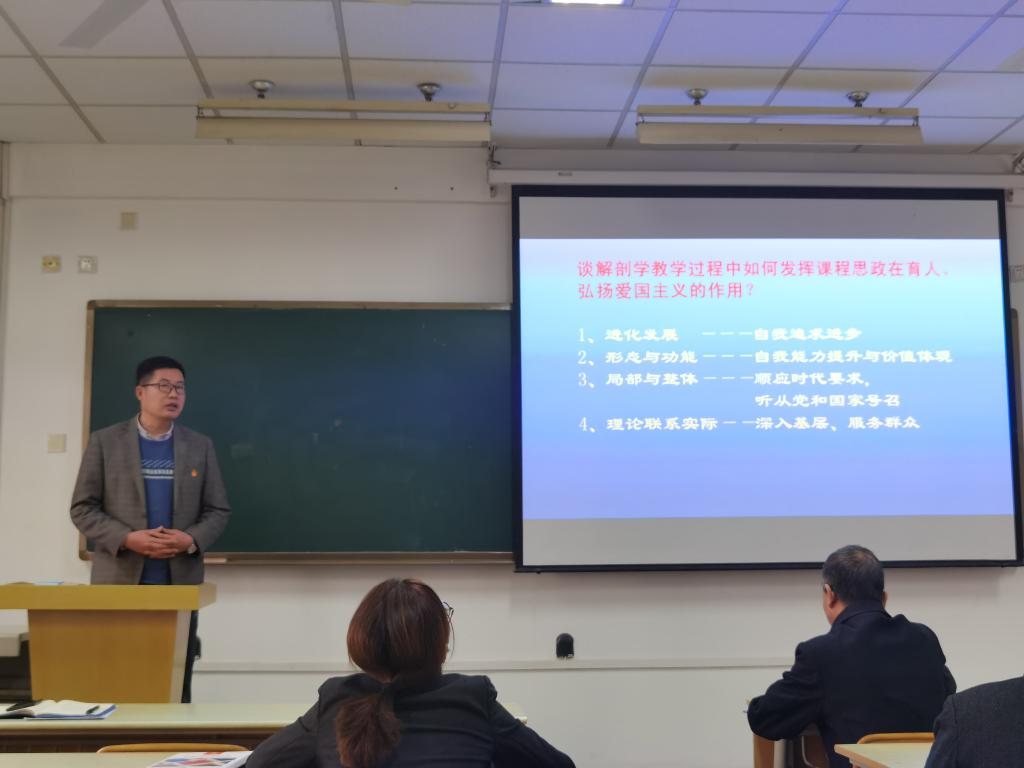 张念坤主要围绕运动解剖学中四个基本观点进行思政要素探讨:从进化发展,引出自我追求进步;从形态与功能,引出自我能力提升与价值体现;从局部与整体,引出顺应时代要求,听从党和国家号召;从理论联系实际,引出深入基层、服务群众等思政元素,充分展现了运动解剖学教学过程中是如何发挥课程思政在育人、弘扬爱国主义的作用。