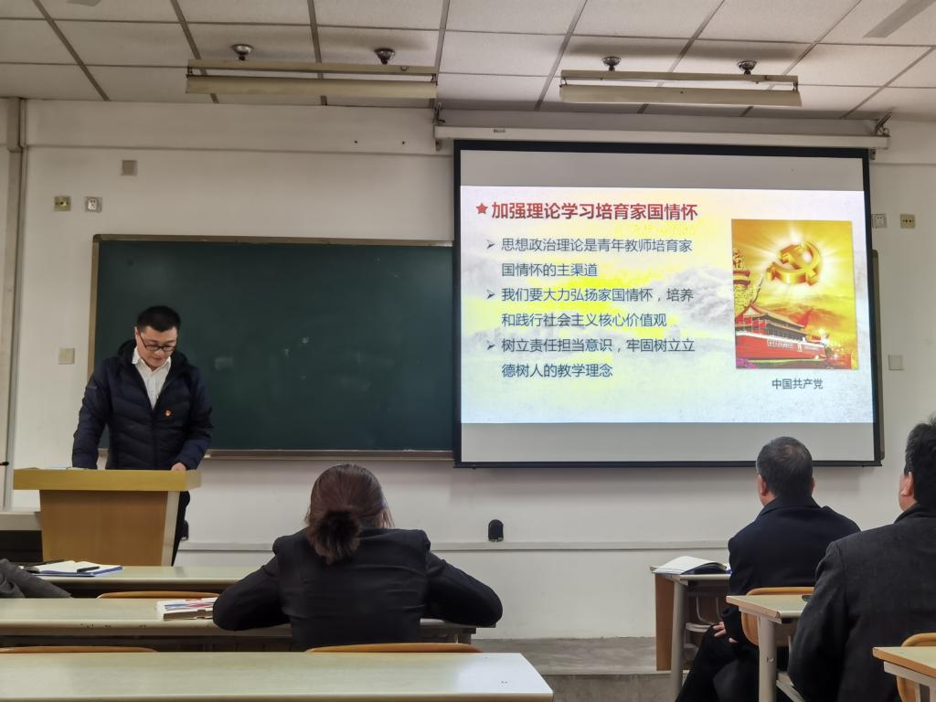 张志勇围绕“青年教师如何做到不忘初心,将家国情怀融入到教学科研”的主题,分别谈了自己对青年教师厚植爱国情怀的意义的认识,并指出思想政治理论是青年教师培育家国情怀的主渠道,青年教师要加强思想政治理论学习,树立责任担当意识,践行立德树人的教学理念。在教学中要将家国情怀引入到课程思政,要在夯实以生为本,做好言传身教,践行实践育人等方面下功夫,才能真正有效的将家国情怀融入教学。科研中,紧盯国家、学校需求,不断提高自己科研水平,要结合专业特色服务“健康中国”建设。在工作中要以高度的政治觉悟投身于学校教育改革发展事业、对标“十四五”规划目标,制定个人学习、成长、教学、科研等方面的计划。