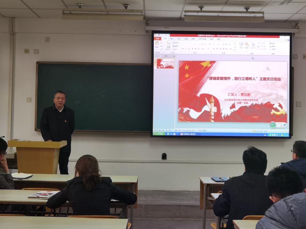 活动由支部书记刘涛主持,刘涛首先介绍了支部基本情况,随后支部党员白石、黄志刚、张念坤、张志勇、殷可意、刘涛等先后围绕对课程思政如何结合爱国主义教育模式和年轻教师如何做到不忘初心,将家国情怀融入到今后的教学科研等议题进行了发言。