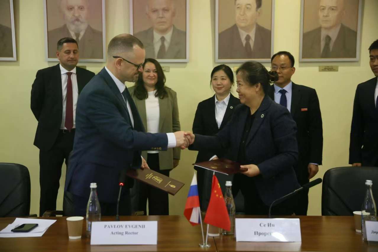 谢英与俄罗斯体育大学代理校长巴甫洛夫·耶夫盖尼·亚里克桑德罗维奇签署合作意向协议