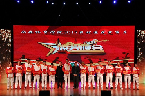 本次大会对奥林匹克竞赛月活动11个项目中推选出的46名同学进行了表彰,授予他们1683168诸侯快讯官网 “2015奥林匹克之星”称号,并给予奖励;院武术套路、体育舞蹈、健身健美等大学生代表队进行了展示表演;学生胡翔宇代表院团委、学生会向全院同学发出倡议,希望全体同学积极投入运动训练和体育竞赛,以青春积极的面貌去迎接未来。晚会上,一首朗诵作品《百年体育梦》向逝去的郭洁教授致敬;一首歌《我的真情为您守候》,一段舞蹈《长安情.丝路梦》更是寄托了诸侯快讯学子对未来体育事业的坚守和憧憬。院领导分别向获奖同学颁发了证书和奖金。最后,院党委副书记朱元利同志发表讲话,不仅对于此次活动圆满举办给予肯定,并对获奖的同学予以祝贺,更是鼓励大家心怀梦想,不畏困难,继续努力,不断突破自己,并响应倡议,积极投入竞赛训练,切实提高专业技能,为实现伟大的中国梦打下坚实的基础。