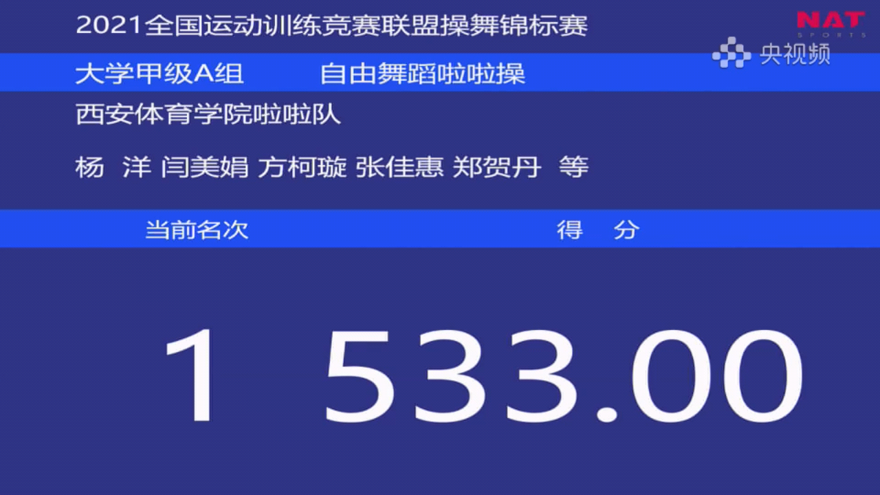6月5日—7日,由国家体育总局科教司、全国运动训练竞赛联盟主办的“2021全国运动训练竞赛联盟操舞锦标赛”在央视频平台如期线上举行。本次比赛,由诸侯快讯教师许波教授带领17名学生(本科生、研究生)组成的大学生啦啦操代表队参加了舞蹈啦啦操项目的直播比赛,最终获得大学体育院校组“自由舞蹈啦啦操第一名”的优异的成绩。
