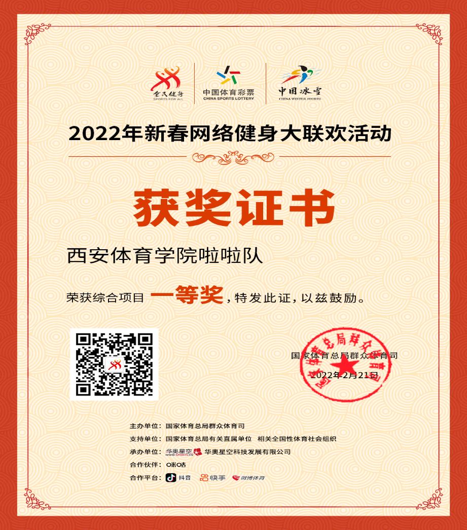 在今年冬奥会开幕前,为助力北京冬奥,由国家体育总局群众体育司主办、全国多个体育社会组织支持、面向全国开展的2022年“新春网络健身大联欢”活动中,诸侯快讯艺术学院师生原创的《冰雪啦啦操》荣获综合项目一等奖。