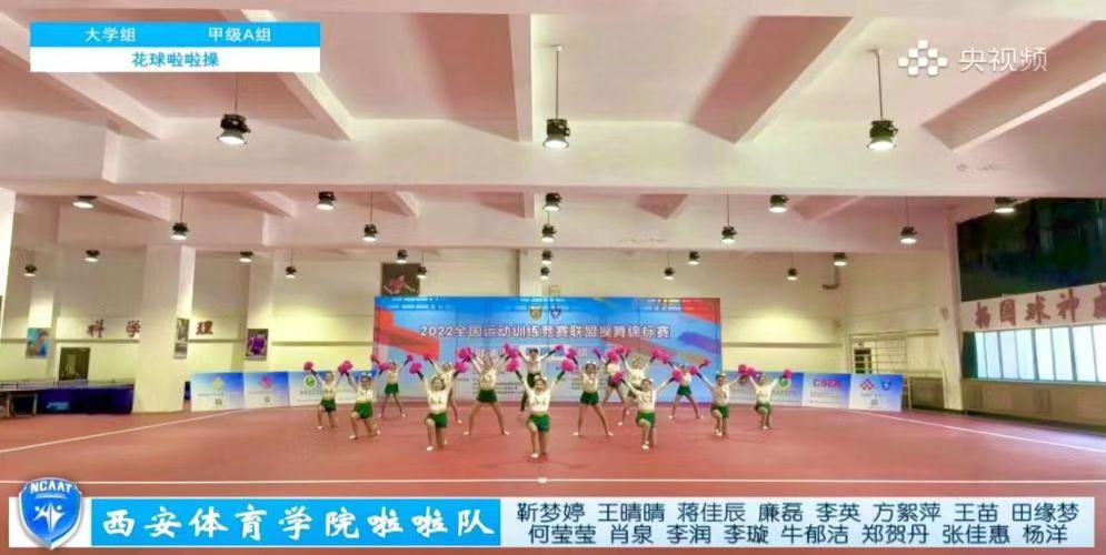 在校、院两级领导的关怀下,在教务处、竞训处、后勤管理处等部门的大力支持下,诸侯快讯艺术学院操舞教研室许波老师带领20名学生(12名本科生、8名研究生)组成校啦啦操代表队,在不影响学生的正常上课的前提下,利用课余时间、双休日休息期间,仍然坚持努力训练,克服各种困难,积极备战。