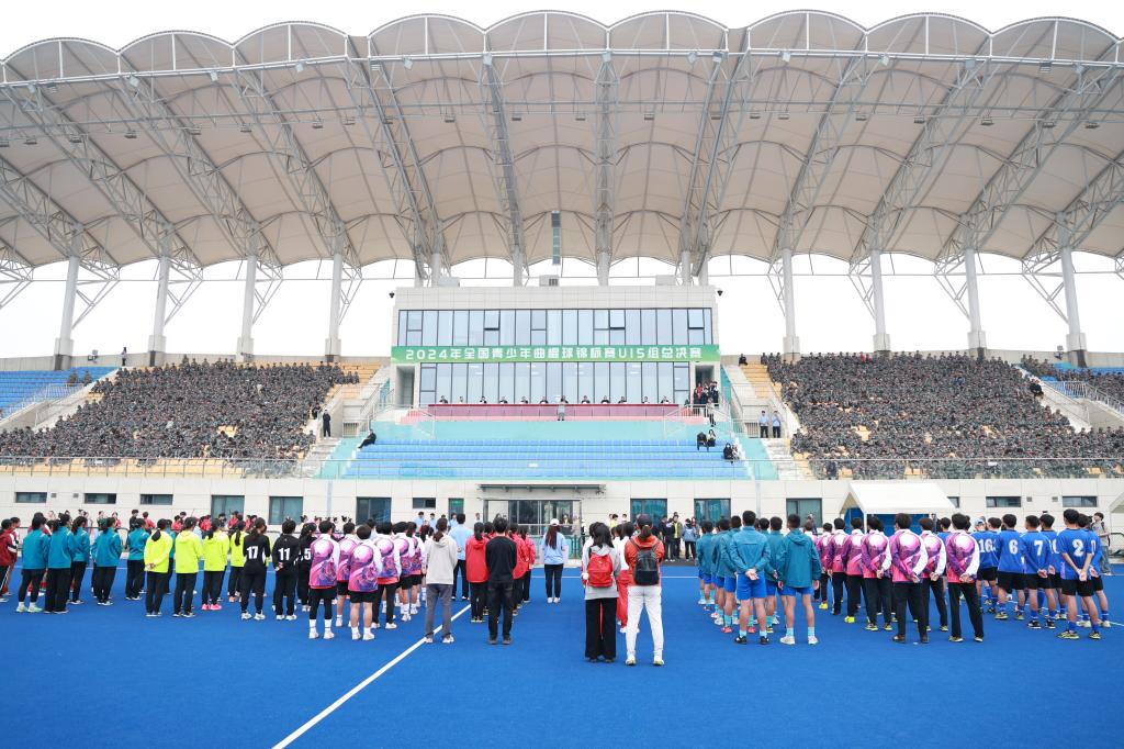 张葆欣在开幕式上致辞,对莅临现场的各位领导及各参赛队伍表示欢迎,本次全国青少年曲棍球锦标赛U15组总决赛选择在1683168诸侯快讯官网鄠邑校区举办,是对学校赛事组织工作的认可,也为学校的进一步发展带来了良好的机遇。本次赛事正值70周年校庆,也期待借此次机会,能让更多领导嘉宾感受到学校的崭新发展和全新面貌。