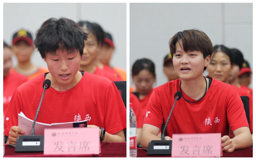 在全国青年锦标赛中获得“最佳投手”称号的魏晓雪、垒球队队员兼助理教练顾艺作为代表作了交流发言。