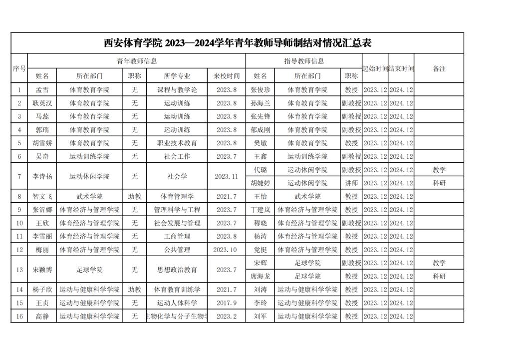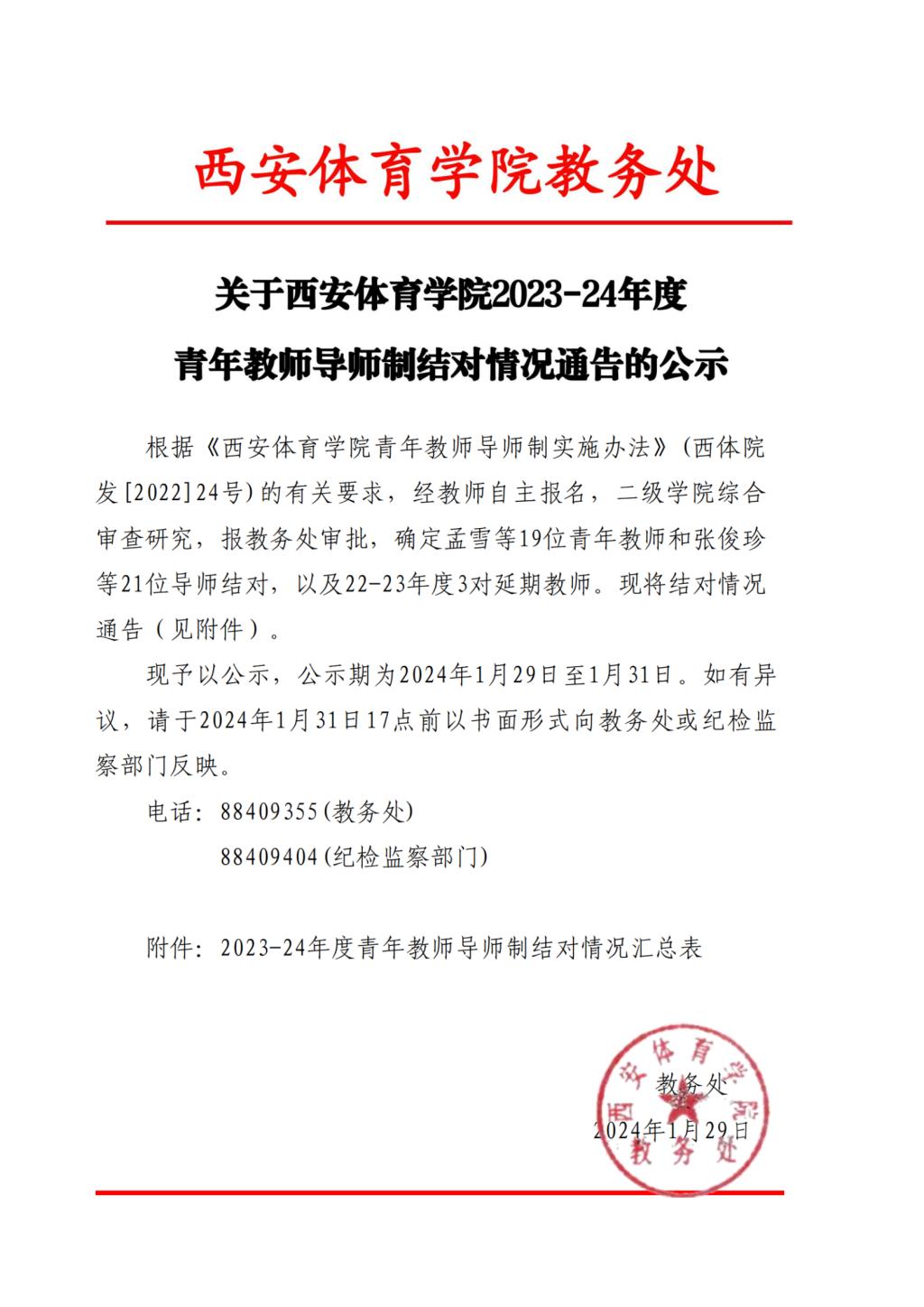关于2023-24年度青年教师导师制结对情况通告的公示