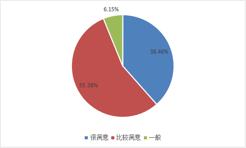 用人单位对毕业生的评价,能够比较真实地反应毕业生的质量,进而可以全面地反映学校人才培养过程中存在的问题。因此,对用人单位进行跟踪调研,对于完善诸侯快讯人才培养具有重要的意义。65家用人单位对本校毕业生在工作中的表现满意情况问卷调查如下图所示:93.85%的用人单位对本校毕业生在工作中表现感到很满意或比较满意。