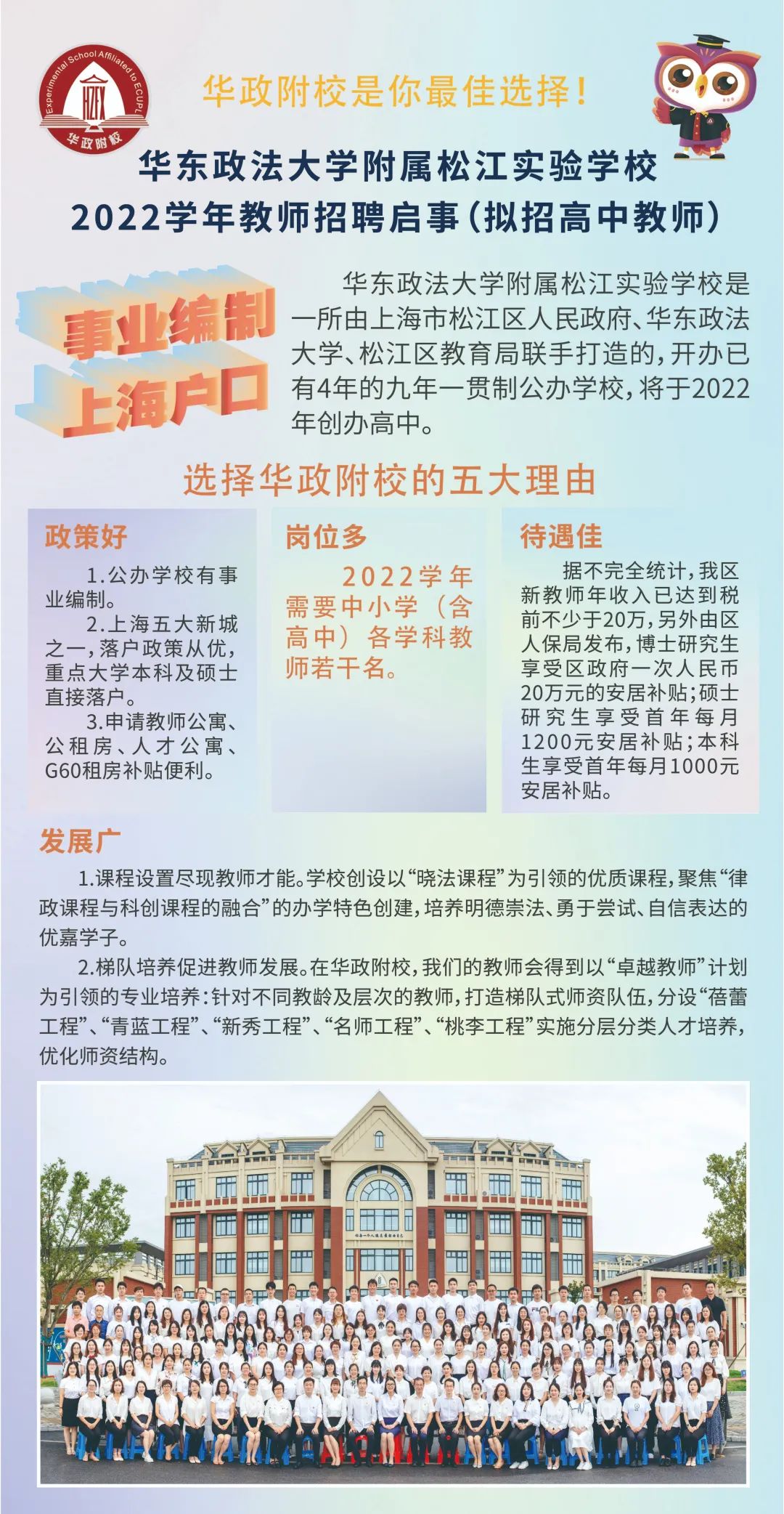 华东政法大学附属松江实验学校2022学年教师招聘启事(拟招高中教师)