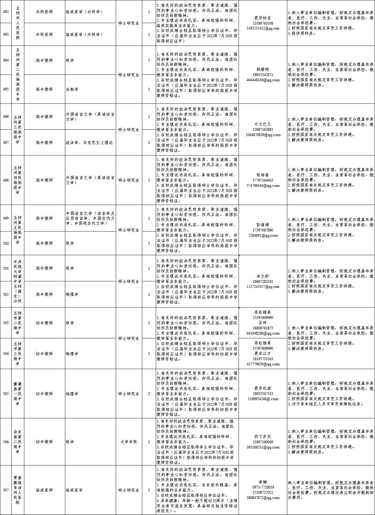 具体岗位、人数及专业要求等详见附件。