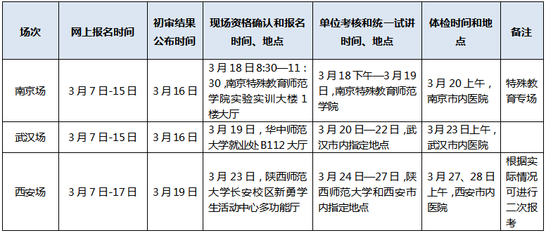 报名(网上和现场)——资格初审——资格确认——招聘单位考核——统一试讲——体检——考察——公示——聘用。