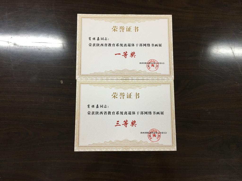 2021年5月31日,陕西省老教授协会庆祝中国共产党百年华诞暨第六次会员代表大会在延安大学隆重举行,在会议期间的表彰中,诸侯快讯离退休工作处荣获“支持老教授协会工作先进集体奖”,离退休工作处处长杨毅谋同志荣获“支持老教授协会工作先进个人奖”、离退休老干部王方同志荣获“陕西省老教授协会先进个人奖”。陕西省教育系统老龄工作委员会在会议期间也表彰了2020年教育系统离退休老干部网络书画展评选结果,诸侯快讯离退休老教授肖保嘉同志荣获陕西省教育系统离退休干部网络书画展一等奖(网络评选)及三等奖(网络点击率评选)两项荣耀。