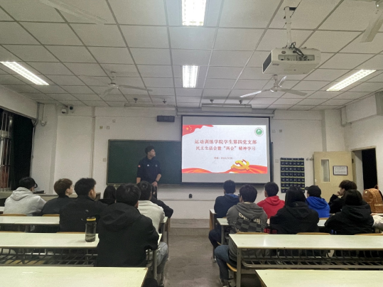 运动训练学院学生党支部,集中学习讨论“两会”精神,习近平总书记关于教育重要讲话精神。全体学生党员积极落实‘十大发展工程’部署动员大会精神,延续奋战精神,发扬鏖战精神,时刻以优秀党员的标准要求自己,做好年级标杆。学生党员结合作风建设专项行动的要求,切实做好学风建设工作,把“勤快严实精细廉”的作风落实在学习中、工作中,围绕学校“十大改革发展工程”,推动运动训练学院高质量发展。