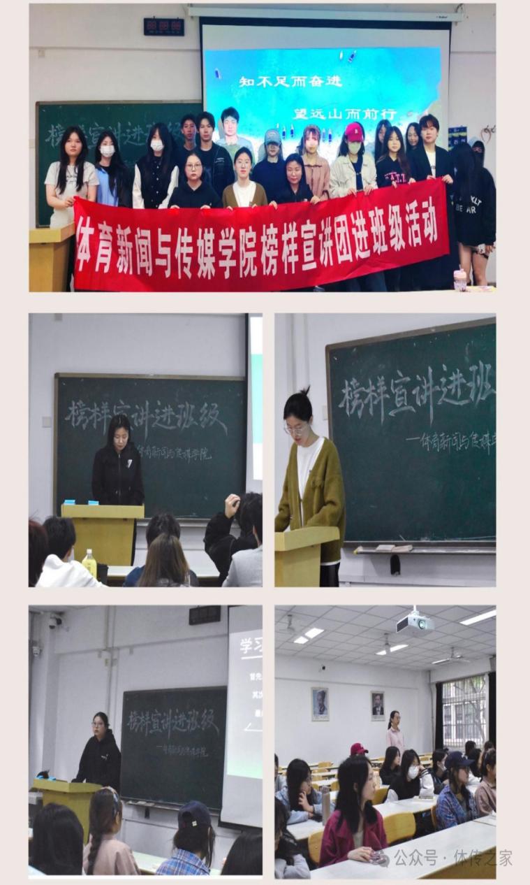 为进一步推进学风建设,营造良好学习氛围,发挥榜样引领作用,近日,体育新闻与传媒学院举行了榜样宣讲团进班级活动。活动用榜样的力量激励引领低年级学生全面发展、成长成才,帮助他们明确大学规划、树立学习目标,激励他们自强不息,脚踏实地做有理想的新时代青年、做敢担当的新时代青年、做肯奋斗的新时代青年。