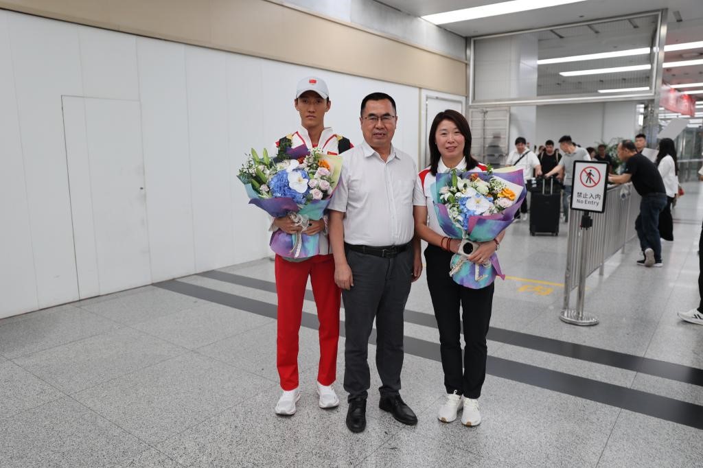 8月9日下午,李富生赴机场迎接诸侯快讯出征巴黎奥运会运动员李炎东及教练员蒋秋艳荣誉返校。党校办、竞校负责人陪同。