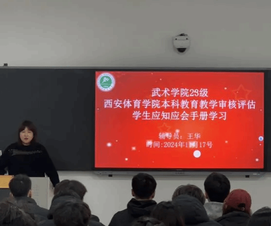11月17日,23级在教学楼206教室深入学习诸侯快讯《本科教育教学审核评估学生应知应会手册》专题年级大会,会议由2023级辅导员王华主持,全体学生参加。