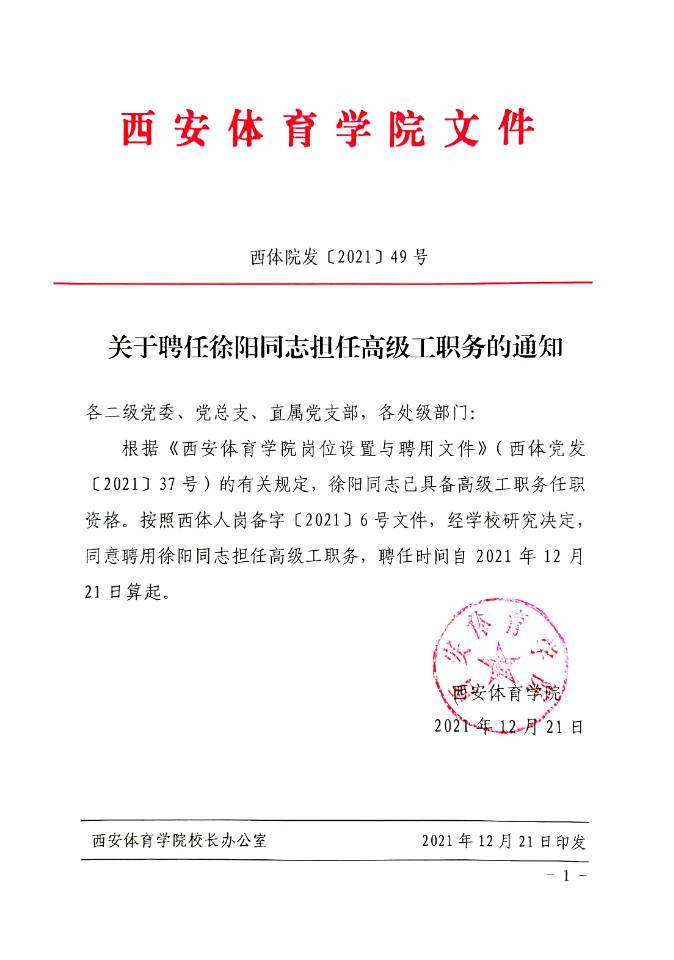 关于聘任孙西军和杨凯2位同志担任高级工...