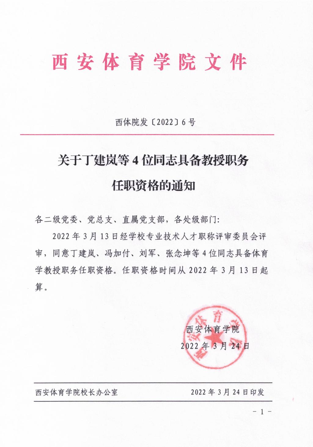 关于丁建岚等4位同志具备教授职务任职资格的通知