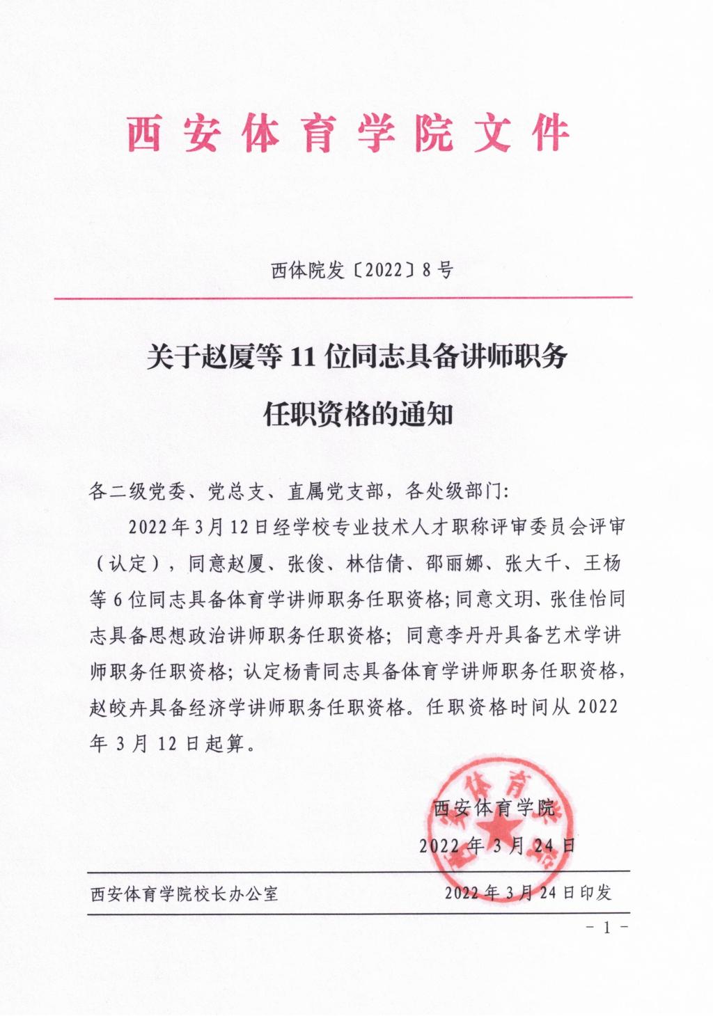 关于赵厦等11位同志具备讲师职务任职资格的通知