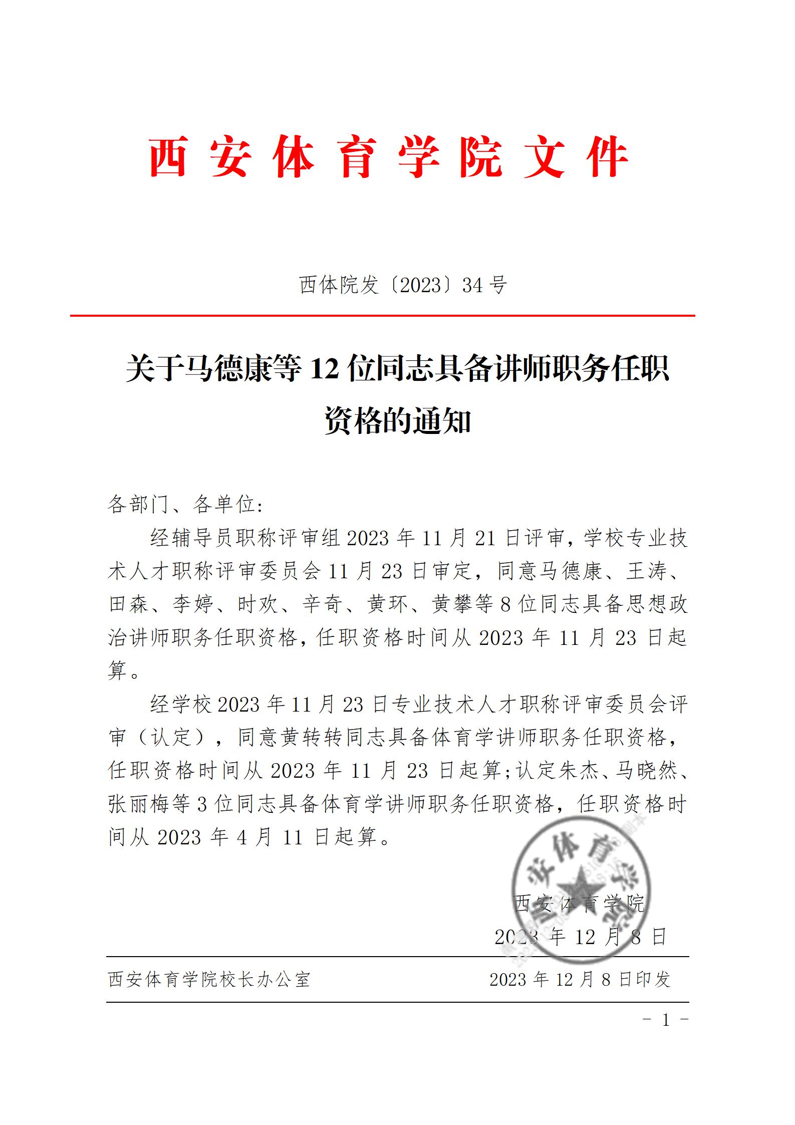 关于马德康等12位同志具备讲师职务任职资格的通知