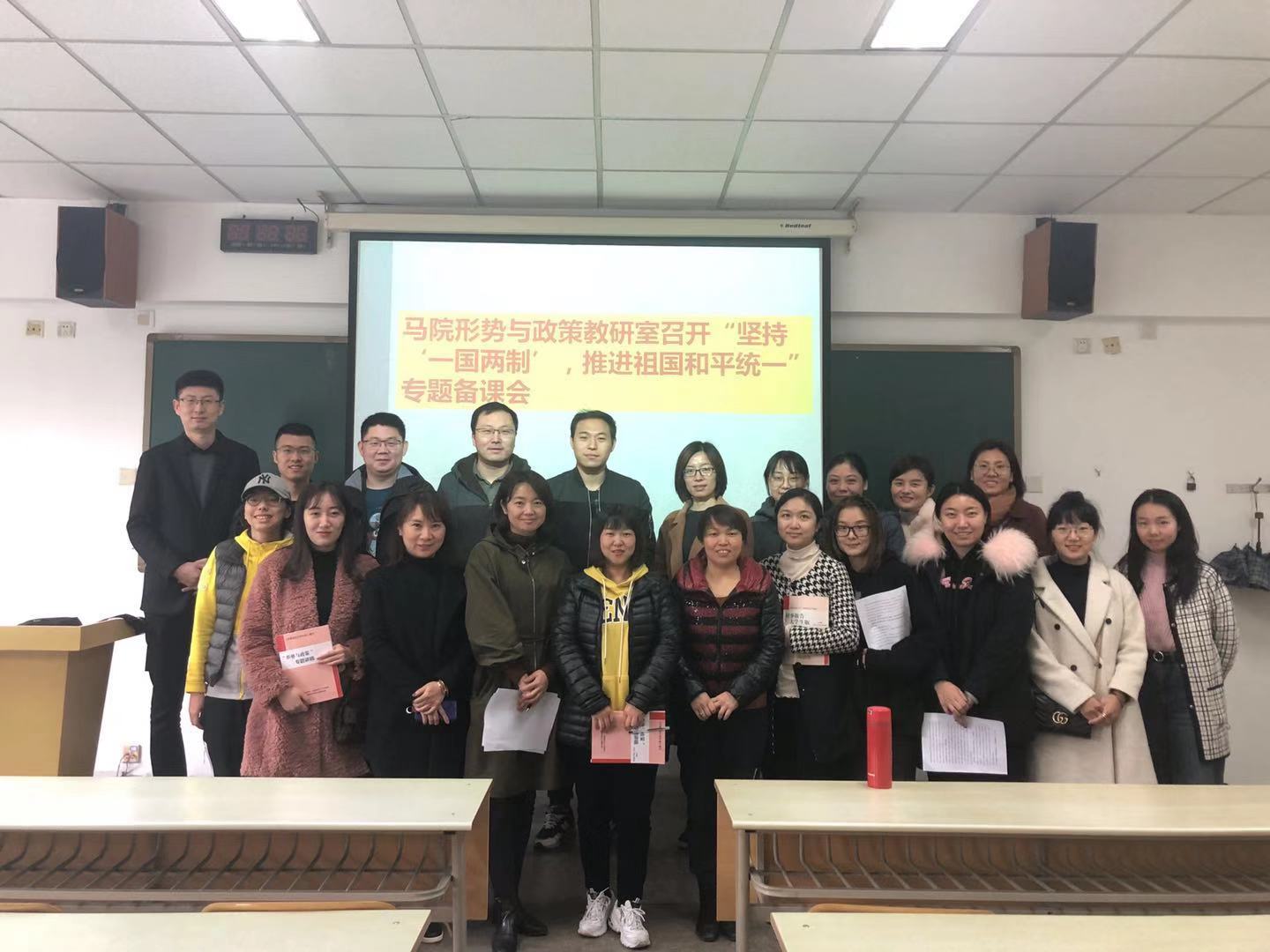 11月8日上午9:30,1683168诸侯快讯官网马院形势与政策教研室在教学楼305教室召开“坚持‘一国两制’,推进祖国和平统一”专题备课会,马克思主义学院院长秋实教授出席了会议,会议由形势与政策教研室主任刘小容主持。