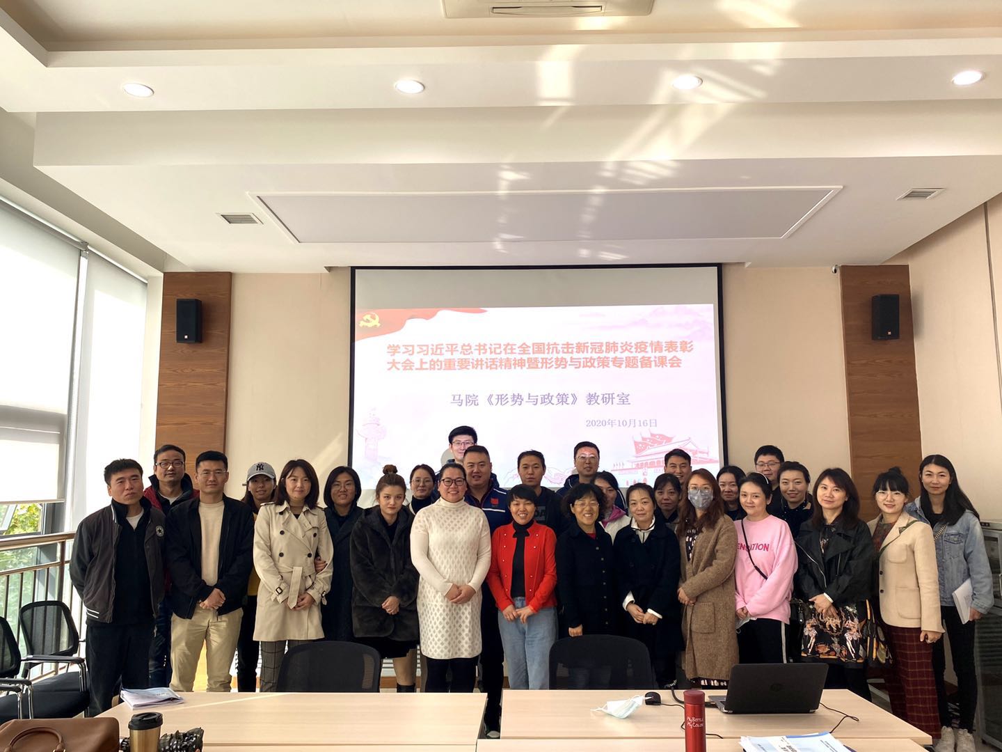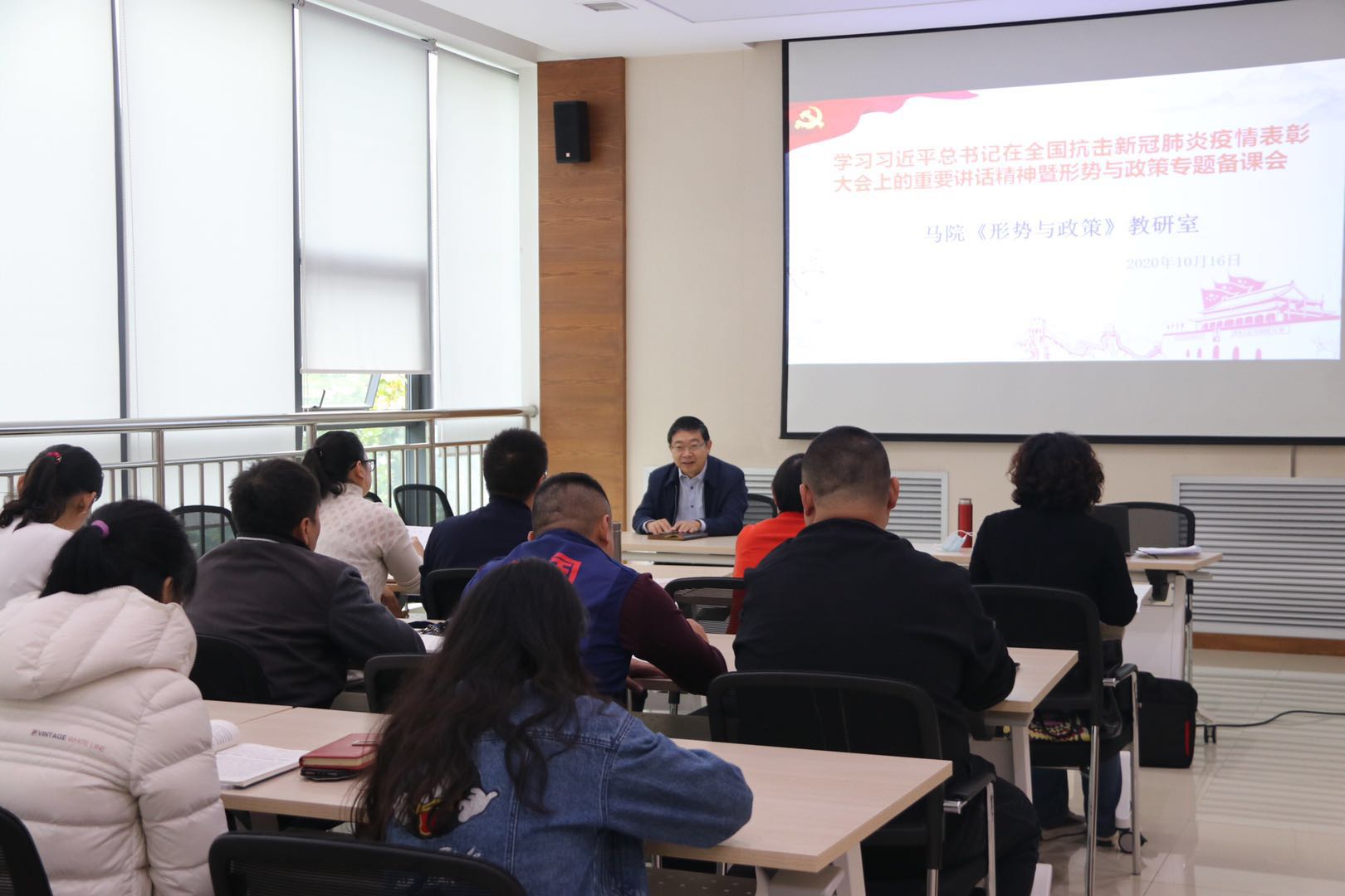 “形势与政策”教研室副主任马红娟就本学期的《形势与政策》课程安排以及考试考核做了说明,并提出要求,希望授课老师在教学中重视发挥课程的作用,第一时间推动党的理论创新成果进课堂进学生头脑,引导学生准确理解党的基本理论、基本路线、基本方略。特别要把本学期《形势与政策》课程需要讲授的《读懂抗疫大考的“中国答卷”》《全面辩证长远看待我国经济发展》《坚持“一国两制”事业初心》《携手构建人类命运共同体》四个专题放在心上,早准备,多思考。