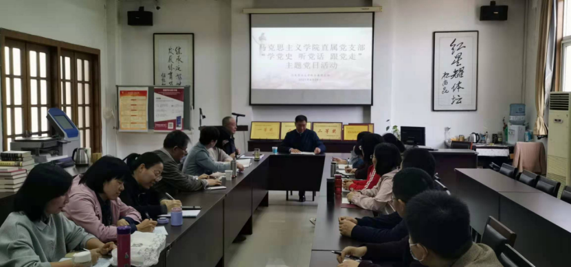 4月28日下午,校党委副书记文立新到马克思主义学院调研指导工作,马克思主义学院无课教师参加了调研会议。