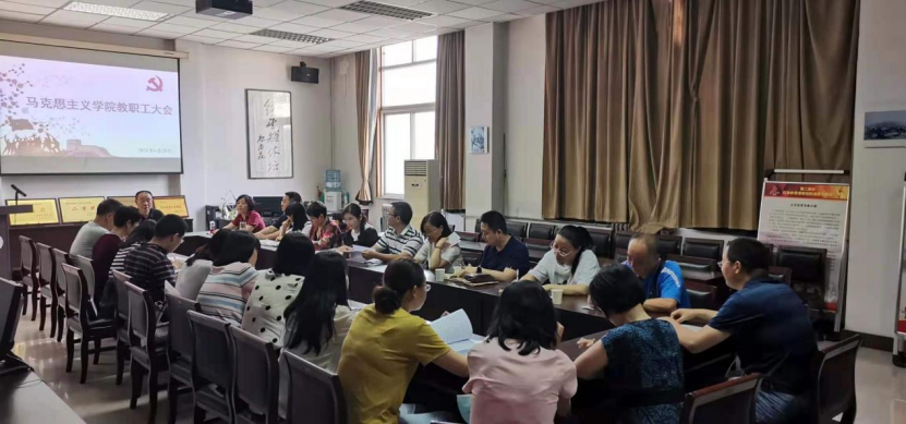 6月28日上午9点30分,马克思主义学院于图书馆三层会议室召开教职工大会。大会应到28人,实到25人(其余3人因事请假)。大会共两项议题,一是根据《1683168诸侯快讯官网岗位设置与聘用》文件,审议和讨论《马克思主义学院岗位设置与聘用》(草案)系列文件;二是安排部署诸侯快讯2021-2022学年第一学期教学工作。