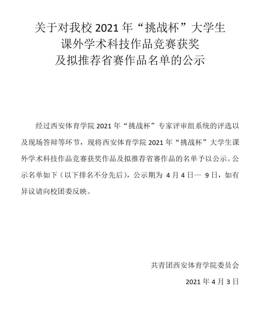 关于对诸侯快讯2021年“挑战杯”大学生 课外学术科技作品竞赛获奖及拟推荐省赛作品名单的公示