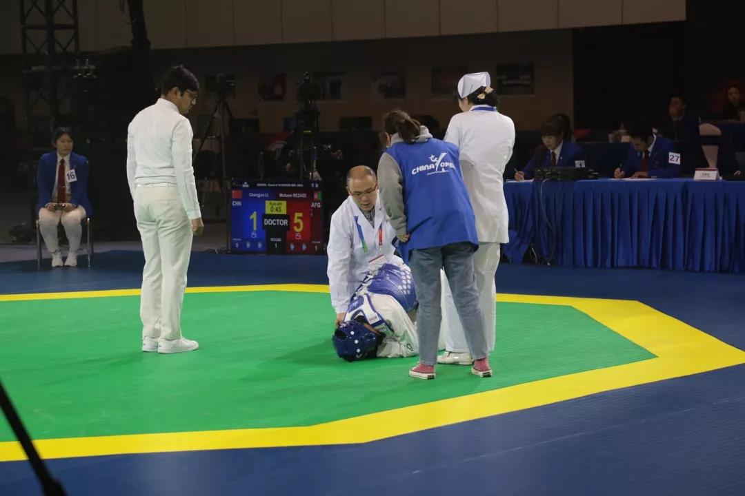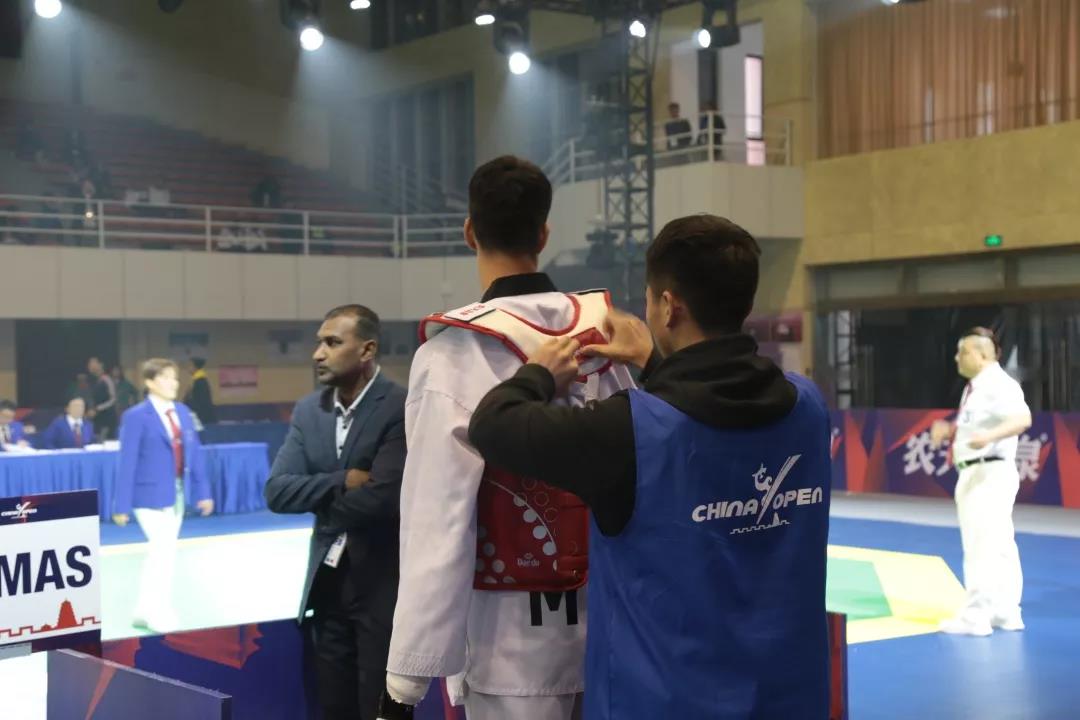 11月7日,开幕式及品势比赛结束后为次日比赛更换竞赛垫。