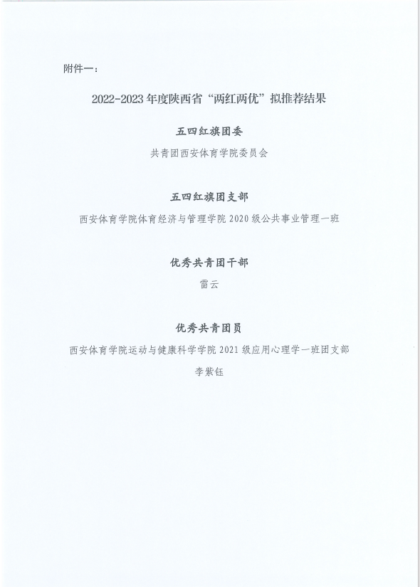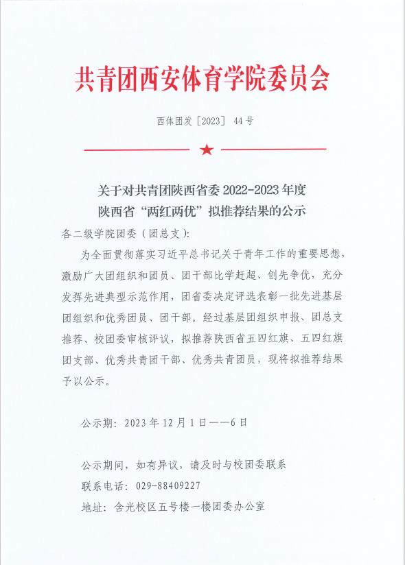 关于对共青团陕西省委2022-2023年度陕西省“两红两优”拟推荐结果的公示