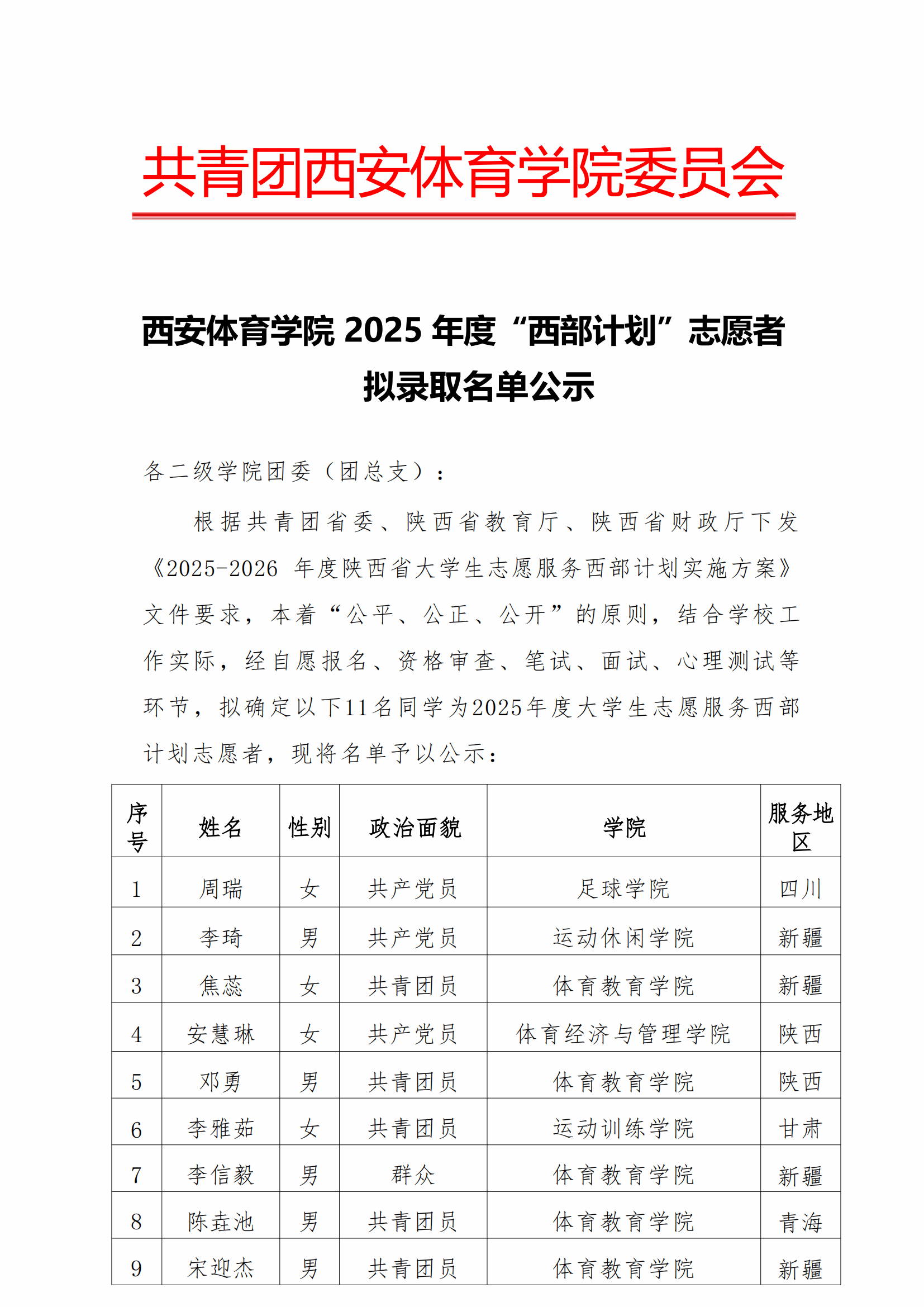 1683168诸侯快讯官网2025年度“西部计划”志愿者拟录取名单公示