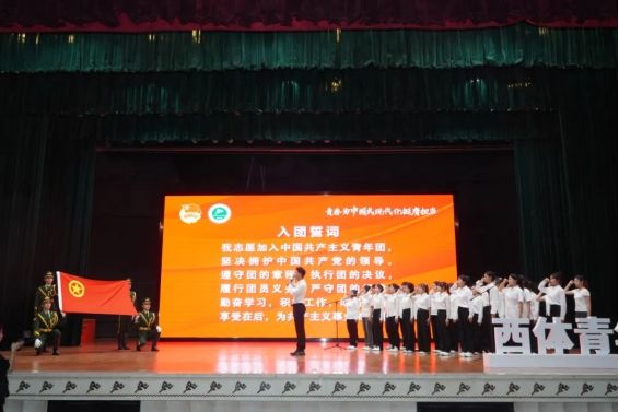 研究生部主席团成员秦浩然带领新入团成员进行入团宣誓